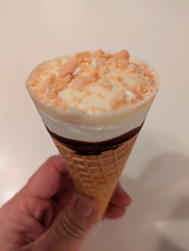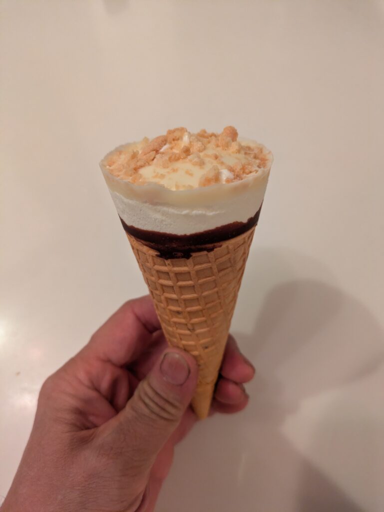 底の方はワッフルコーンがサクサクで、ホワイトチョコの甘さと一緒に良いアクセント。