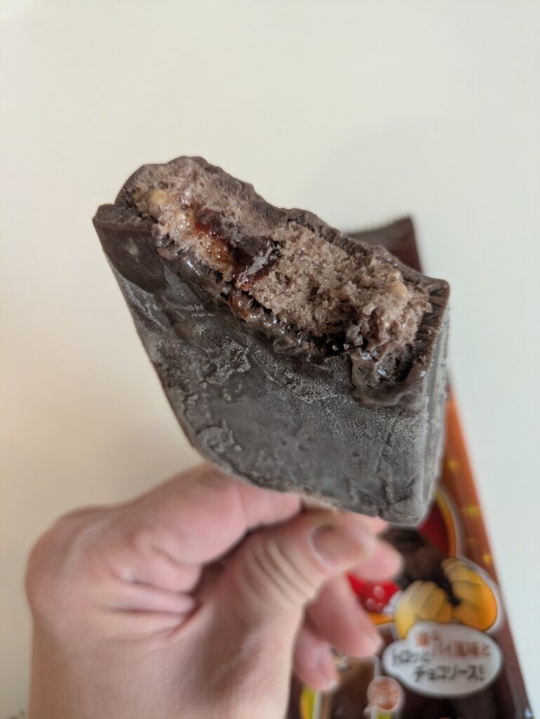 中心のチョコソースは少しねっとりしていて、チョコパイのチョコを連想させる味わい。