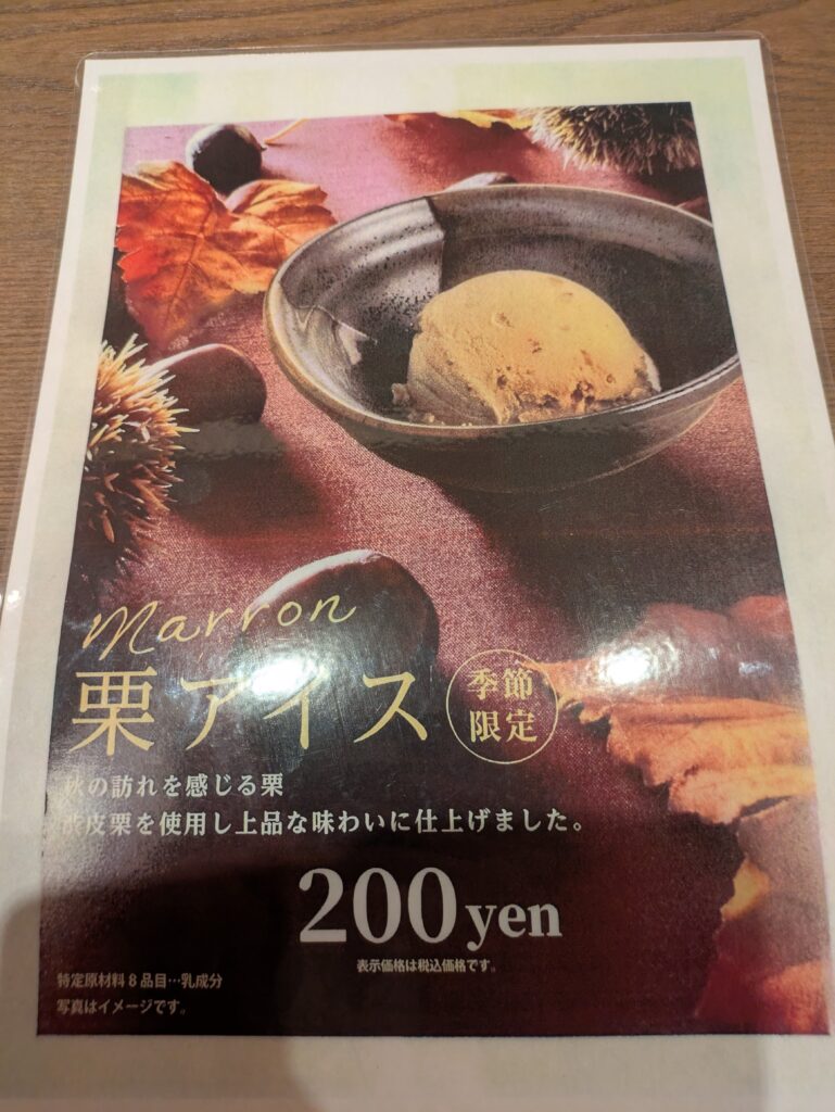 食後におすすめなのが、秋季限定の「渋皮栗アイス」。