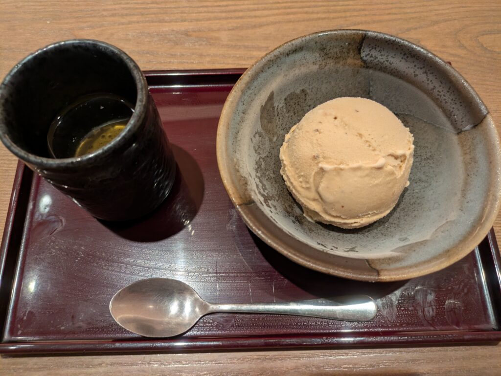 濃厚な栗の風味とまろやかなアイスが絶妙にマッチし、そばの後にぴったりのデザート。 一口食べる度に栗を感じる濃厚さと栗の粒が入っていて食感も良かったです。