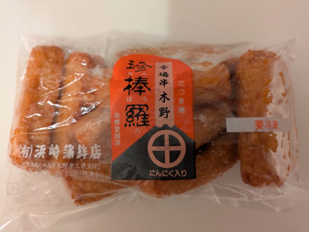 今回は、串木野の勘場蒲鉾店のさつま揚げから、浜崎蒲鉾店の名物「珍棒羅(ちんぼうら)」まで、実際にいただいたものを紹介します。
