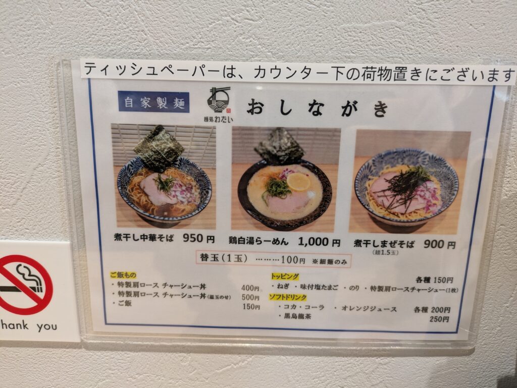 「麺処わたい」は、素材と技術の両面にこだわる実力派の新店。煮干しラーメン好きはもちろん、シンプルで丁寧な味わいを求める方にもおすすめです。他にも、鶏白湯らーめん、煮干しまぜそばも気になるので、また今度行ってみたいお店ですね。