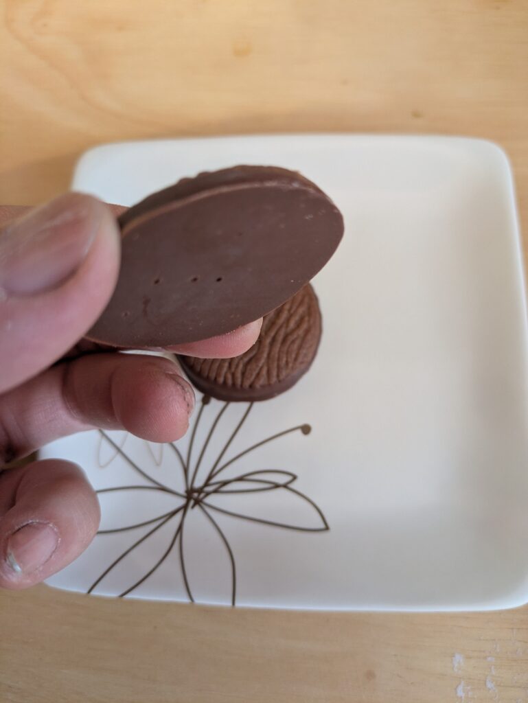 - ビスケット全体をミルクチョコレートでフルコーティング