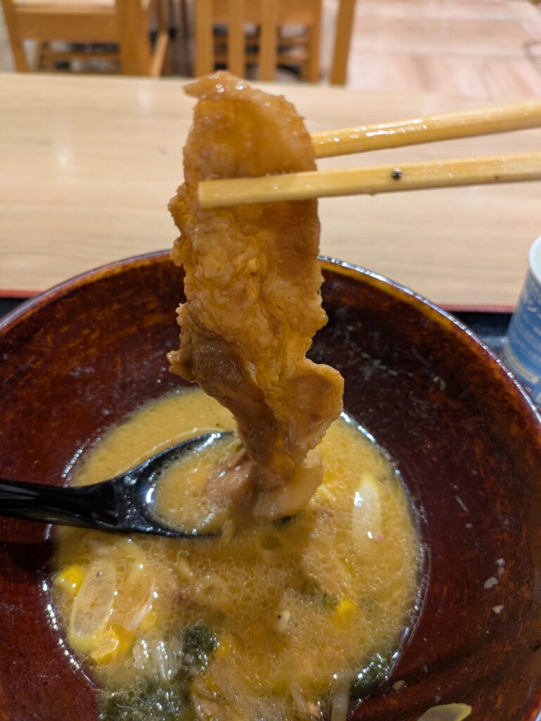 特に目を引くのは、丼の上を覆うように並べられた炙り豚。しっかりとした厚みがあり、表面は香ばしく、中はとろける柔らかさ。噛むたびに旨みと香りが広がります。まるで焼肉なので、ご飯も頼めば良かったと反省しました。。。