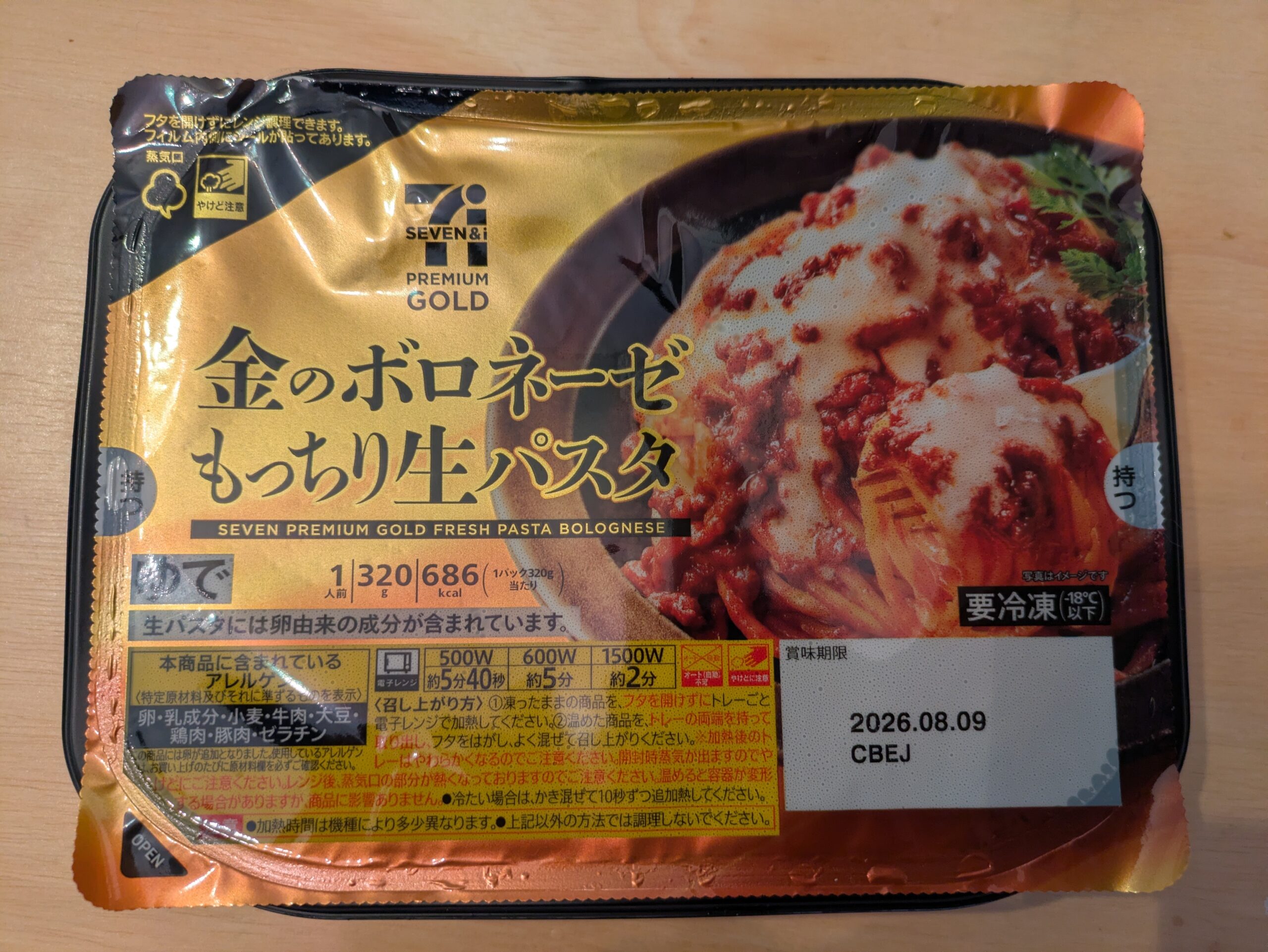 - 商品名:セブンプレミアム ゴールド 金のボロネーゼ生パスタ