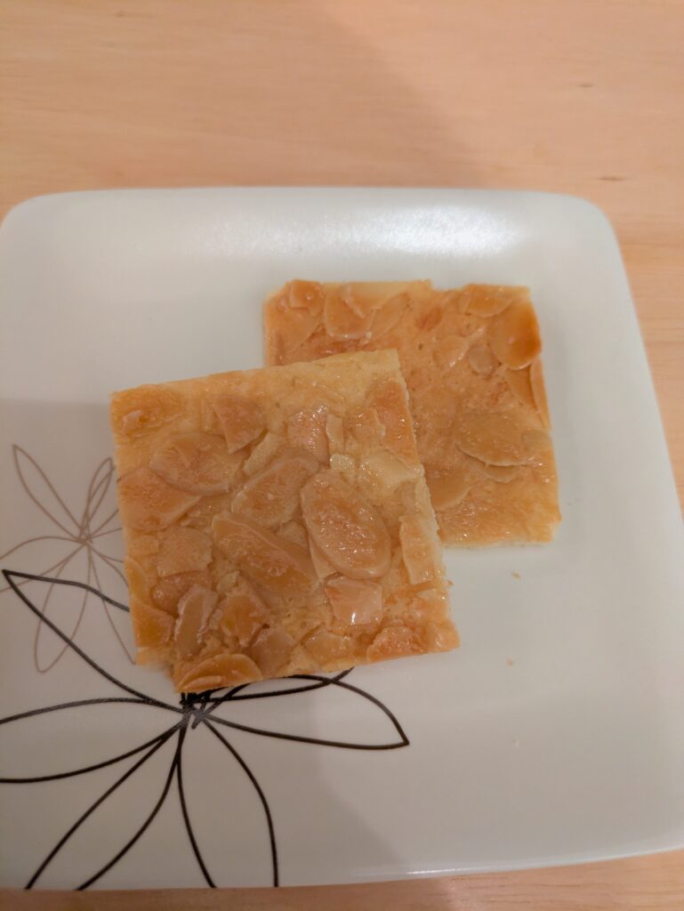 生地にアーモンドをたっぷり散りばめた、香ばしい焼き菓子。