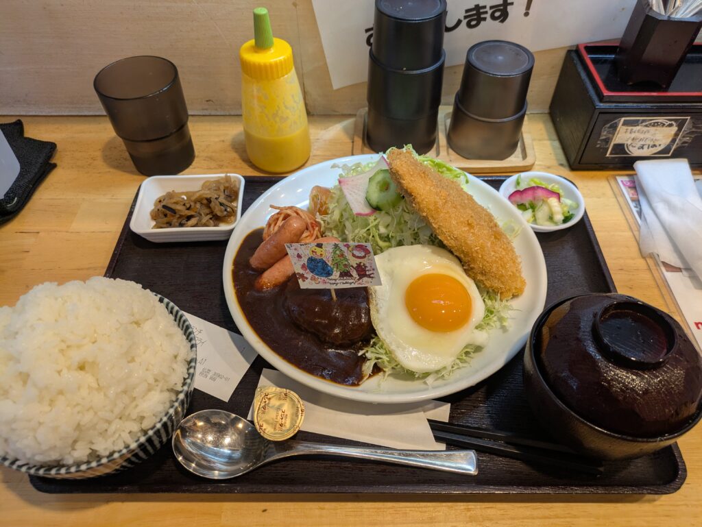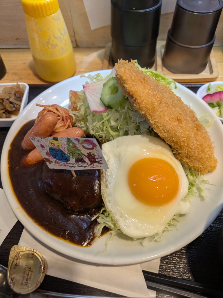 デミグラスソースのハンバーグもコクがあり、ウインナーは良いアクセントになっています。